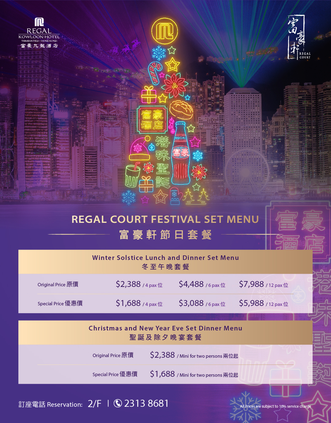 - Prices are in Hong Kong dollars and subject to a 10% service charge and prevailing government tax (if applicable)