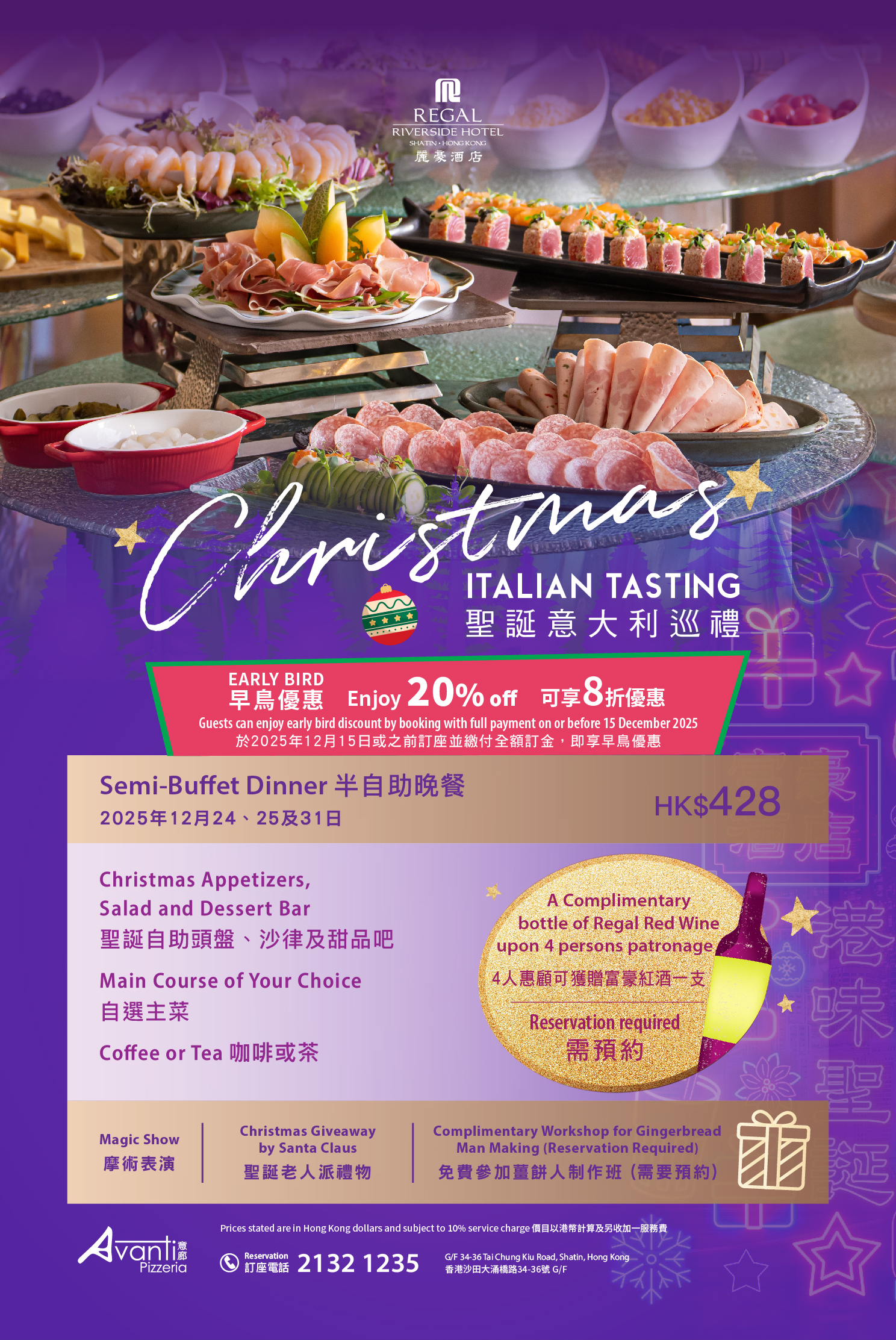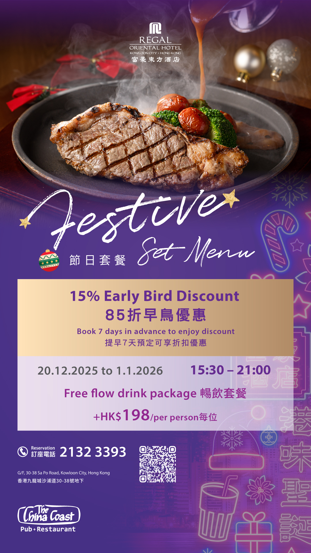 藝廊咖啡室 - 聖誕自助午晚餐 華岸酒吧扒房 - 四道菜 ‧ 聖誕饗宴 |