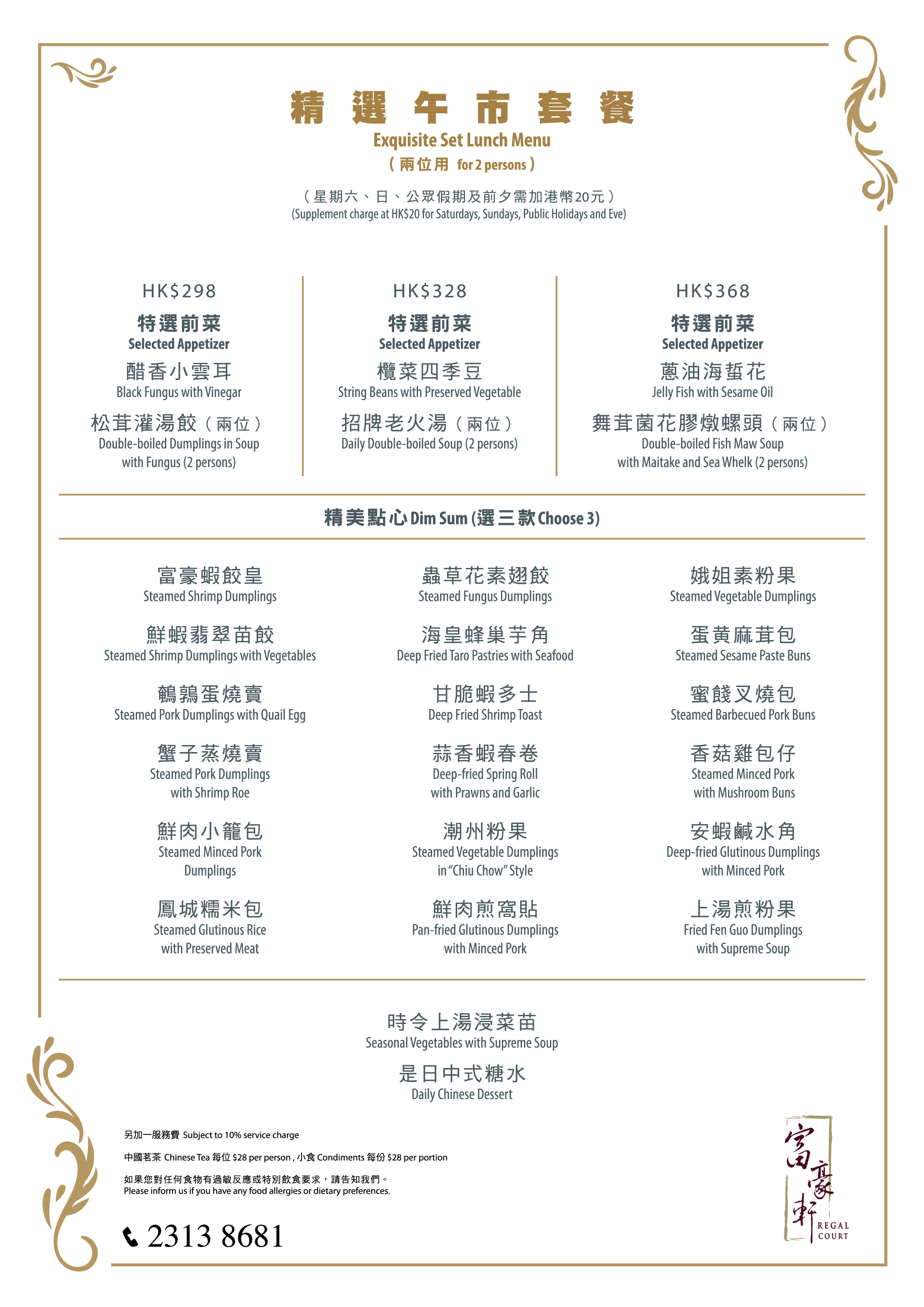 富豪軒隆重推出四款適用於平日及假日的精選悠閒午市及晚市套餐,每款菜譜均展現富豪軒的招牌特色菜餚及點心,將帶來全新的味蕾體驗,讓您踏上一場展現正宗粵菜精髓的美味之旅!